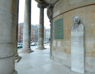 しかし、この2つの交差点を見渡しても、丸い広場など見当たらない。かろうじてオックスフォード・サーカスに降り立ってその四つ角を見ていると、建物の角の曲線がつながって円弧を描いているように見えてくるぐらいで、ピカデリーの方はさっぱりだ。建築家ジョン・ナッシュは、密集したロンドンの街に幾何学的広場を捻出しようとした訳だが、中途半端な感は否めない。