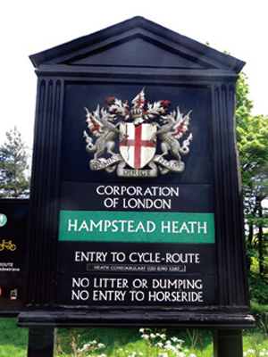 広大なハムステッド・ヒースの入口にはシティの紋章