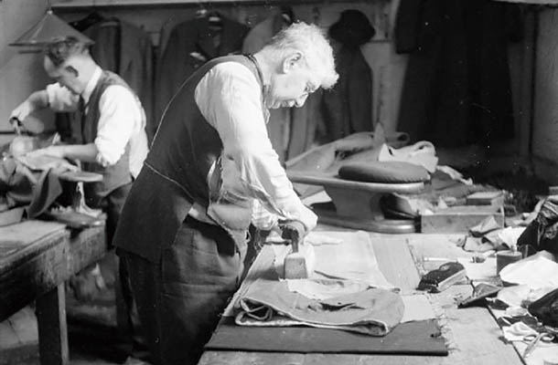 ズボンにプレスをするヘンリー・プールの職人(1944年)