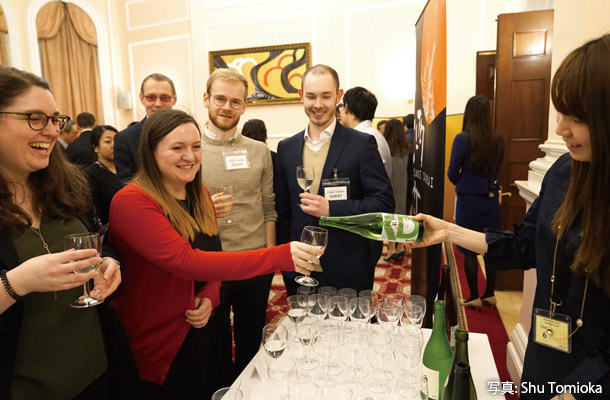 レセプションに出席した、日本食のスペシャリストであり英国で「英国日本酒協会」を主宰するシャーリー・ブース氏は「大災害を乗り越えて、現在も変わらず質の高い日本酒を醸している福島県の多くの酒蔵には、敬意の念を禁じ得ない」と語り、英国内外でワイン評論家として活躍するアンソニー・ローズ氏は、「寿司や牛のたたきなど、今晩供された福島の食品はどれも素晴らしかった。多くの英国人は、福島の農産物が安全であると理解していると思う」と話した。