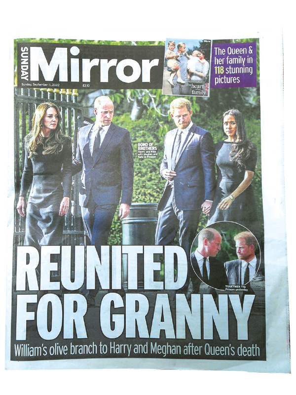 9月8日に亡くなったエリザベス女王を偲び、9〜11日の新聞は女王への感謝から新国王の即位宣誓までを取り上げ、ロンドンの街中では思い思いの形で哀悼の意を示す市民の姿が見られた。また、中心地ではトリビュート・サインも各地に出現した。