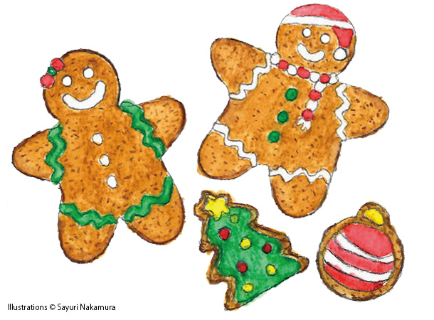 この時期に友人の家を訪ねると、紅茶と一緒にミンス・パイが登場するのも定番です。ソファに座っておしゃべりしながらツリーに目をやると、人型のビスケットがぶら下がっています。「ジンジャーブレッド・マン」です。最近では「ジンジャーブレッド・ピープル」とも呼ばれているようですが、名前の通り、ジンジャーの風味がほんのり効いたビスケット。丸い頭にぽっちゃりめの手と足がついています。