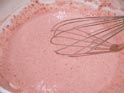 と小麦粉、全粒粉、ベーキング・パウダー、卵、砂糖、牛乳をミキサーで混ぜる。