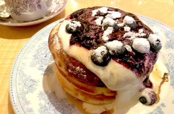 シックな雰囲気の店内は、午前中から友人同士でブランチを楽しむ人や、仕事の打ち合わせをする人々で賑わっている。クロテッド・クリームの添えられたパンケーキは意外にも甘すぎず、さっくり、ふんわりとしていて食べやすい。(取材・写真:梅谷英枝)