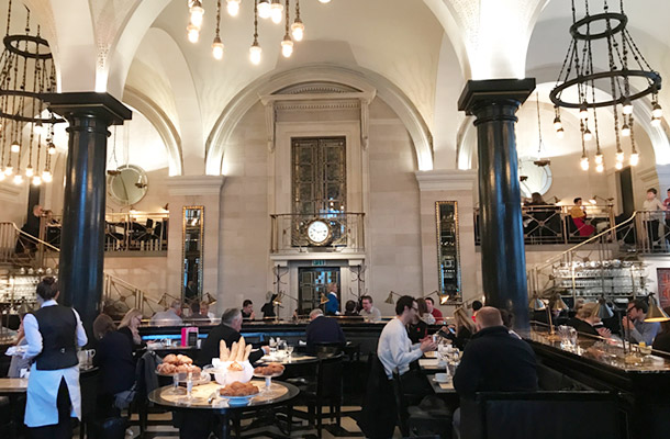 肉市場のスミスフィールド・マーケットの目の前にあるカフェ&バー。場所柄、美食家達が集まるレストランが多いエリアだが、このカフェもそのひとつ。新鮮な食材を使ったメニューがこだわりだ。平日は朝7時半からオープンするためブレックファスト・メニューが充実。バターミルクを使ったふっくらとした3段重ねのパンケーキは、食べごたえ十分。ベーコン&メープルシロップやフルーツがトッピングされたものから選べる。