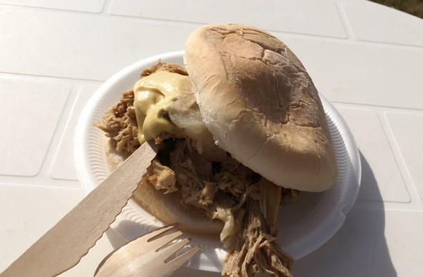 ブログデール果樹園ランチはアップル・ソースを添えたロースト・ポークのサンドイッチ