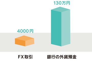 ともに外国の通貨を扱うFXと外貨預金の違いの一つが、一定の利益を得るために必要とされる資金の額です。先の例では、外貨預金で1万ポンドの為替取引をするために130万円を用意する必要がありました。しかし、FXではこの額がわずか30ポンド*(約4000円)になります。外貨預金で必要とされる資金の実に0.3%です。