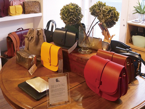 「すべてがロンドン内で製造される、英国製鞄ばかりよ」とスタッフ。素材も食肉用牛の革のみを使い、一切の無駄を出さないのがポリシーだという。どんな服装にも合いそうなスッキリとしたデザインはその多くが男女兼用。小さなポーチからリュックサック、旅行鞄まで小さな店内に所狭しと並ぶ。女性向けには明るいビタミン・カラーやヒョウ柄の小ぶりなバッグがそろい、外出を楽しく演出してくれそうだ。