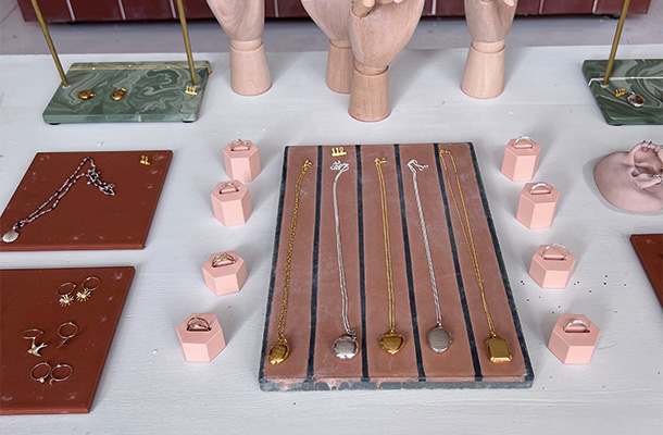オーナーのケリーさんの手による、繊細で美しいジュエリーが魅力のジュエリー・ショップ。ゴールド、シルバー・プレートを中心に、リサイクル・メタルを利用と環境にも優しい。「おばあさんが身に着けていたロケットが大好きだった」という思い出から生まれたロケットのように、作られるジュエリーには素敵なストーリーが。特別な思い出を築くための、カスタム・ジュエリーもオーダーできる。